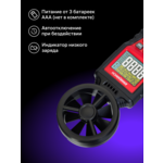 <p>Анемометърът се захранва чрез 3 бр. стандартни батерии AAA (не са добавени). Ако не се използва продължително време, анемометърът се изключва автоматично, което Ви позволява да използвате енергията по-ефективно. Индикаторът за изтощени батерии се показва, когато трябва да се сменят батериите.</p>