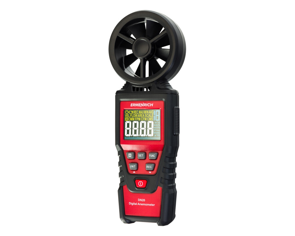 <p>Цифровият анемометър Ermenrich Seek DN20 е компактен уред за измерване на скоростта на въздушния поток на открито и на закрито (вентилационни системи и др.). С него се работи лесно и е подходящ за използване от любители и професионалисти.</p>