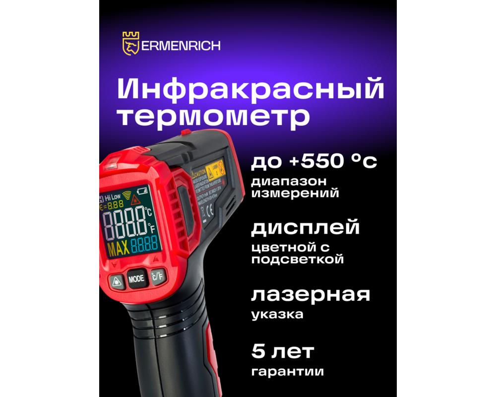 <p>Безконтактният инфрачервен термометър (пирометър) Ermenrich Seek FR40 е предназначен за безконтактно измерване на температура. Отличният уред за извършване на измервания в условия, при които физическият контакт е невъзможен или опасен. Той измерва температура в диапазона −50 до +550°C с помощта на инфрачервеното лъчение. Време на реакция по-малко от 0,5 секунди.</p>
