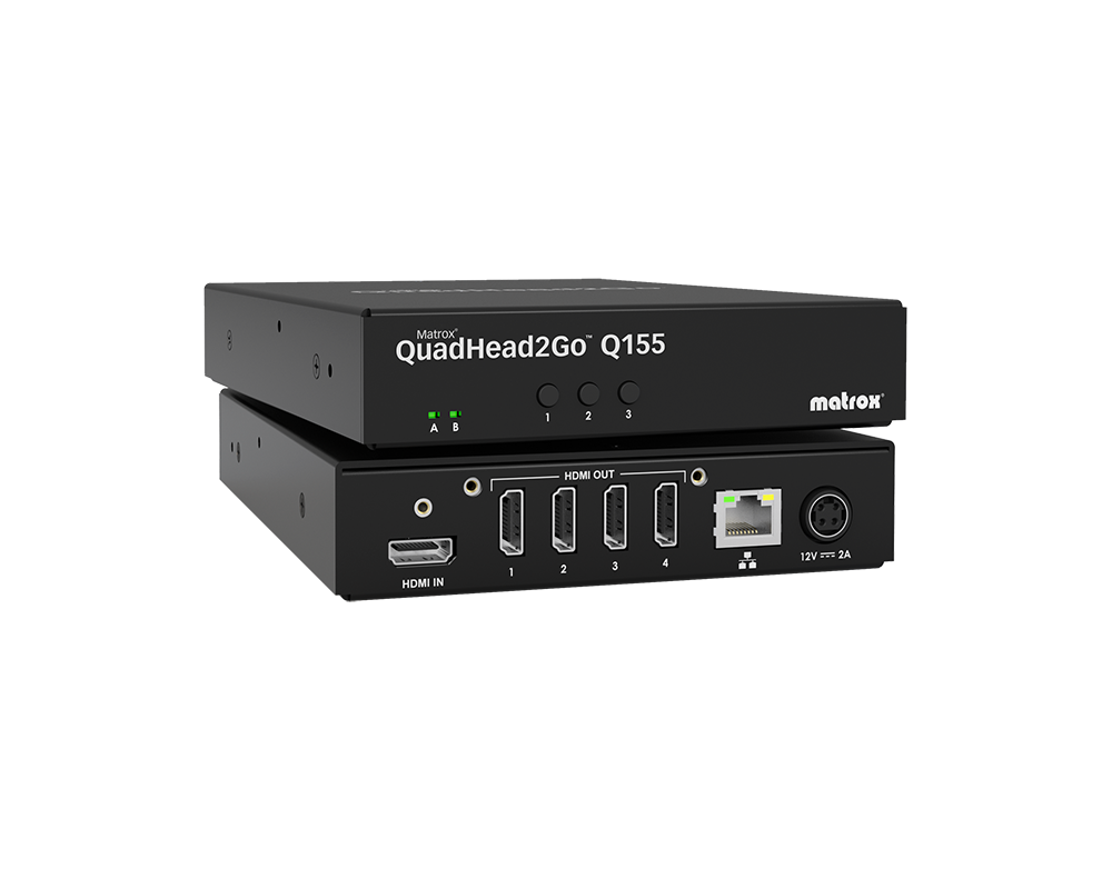 Управлявайте до четири Full HD дисплея от един видео сигнал - до 4Kp60 и 8Kx8K - при пълна поддръжка на RGB 8: 8: 8 и YUV 4: 4: 4. Matrox® QuadHead2Go ™ е проектиран да захранва всяка конфигурация на видеостена с всякакви възможни размери, от всеки видео източник - надеждно предоставящ безупречно качество на изображението на големи дисплеи за видеостени, без да е зависим от системата. Бутоните на устройството на QuadHead2Go и предварително зададените конфигурации осигуряват бързо и безпроблемно инсталиране.