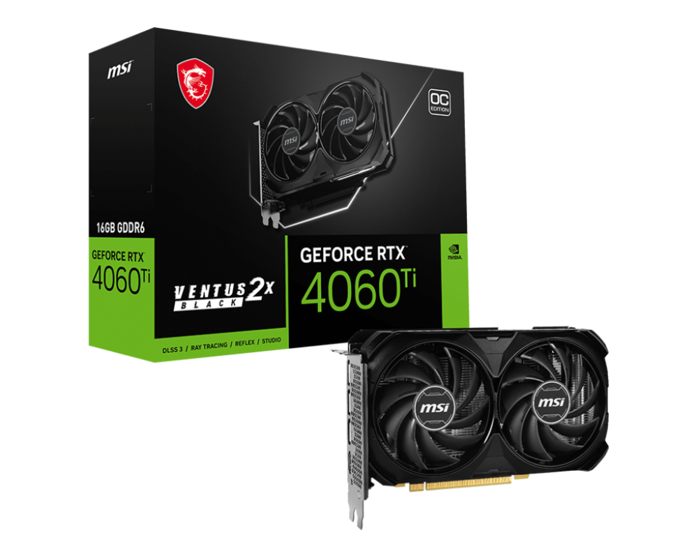 - MSI GeForce RTX 4060 Ti VENTUS 2X BLACK OC 16GB GDDR6 (ID: 687397)