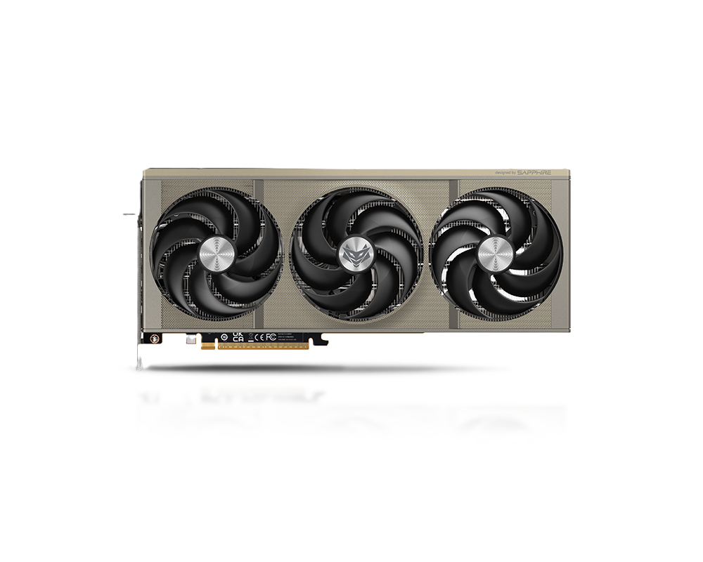 3rd gen Ray Tracing Cores 2nd gen AI Accelerators 56 Ray Tracing Units 112 AI Accelerators 64 MB cache AMD Infinity Cache UEFI BIOS Quick Connect MagniPlate hidden power cable connection Honeywell PTM7950 Thermal Interface Material (TIM) AeroCurve fan blades Free Flow FrameDefense Integrated Cooling Module Cold Rolled Steel Frame Tri-X Cooling Technology High TG Copper PCB composite heatpipes metal backplate ARGB light bar Fan Quick Connect Dual ball Bearing Fans 14 Phase Power Design fuse protection Intelligent Fan Control (IFC) Precision Fan Control Fan Check TriXX Boost ARGB pin-header AMD RDNA 4 Architecture AMD HYPR-RX technologies AMD Fluid Motion Frames 2 AMD FidelityFX Super Resolution 4 (FSR) AMD Radiance Display Engine AMD Radeon Anti Lag 2 Technology AV1 decode support AV1 encode support FreeSync Technology AMD Smart Technologies Triple Fan Design 3.2-slot Fan Cooler |