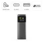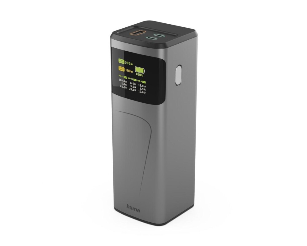- HAMA Външна батерия „High Power“, 200 W, 24000 mAh, 2x USB-C, USB-A, бързо зареждане (ID: 874623)