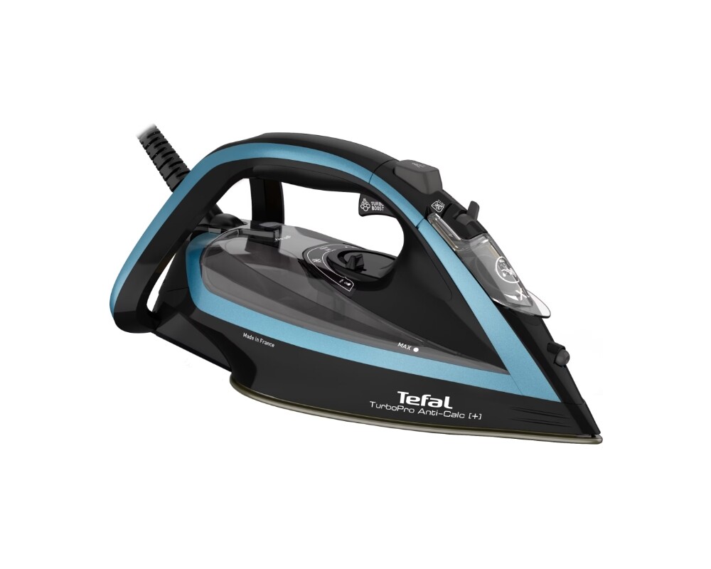 С технология за изтласкване на парата, създадена за дълбоко проникване в тъканта, TurboPro Anti-Scale осигурява изключителни резултати при гладене и дълготрайна ефективност. Нова система, разработена от Tefal, осигурява изключително количество ударна пара- 240 g/мин Turbo Boost, за да изгладите дори най-упоритите гънки, а непрекъснатото подаване на пара от 50 g/минута ви гарантра бързи и ефективни резултати. С 2800 W мощност за бързо загряване, антиваровиков колектор за дълъг живот на уреда и плоча Durilium AirGlide Autoclean за най-доброто плъзгане от Tefal с максимално разпределение на парата, тази ютия е вашето решение срещу всяка упорита гънка.