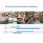 - 16-канално едновременно възпроизвеждане: Повторно предаване от до 16 камери едновременно, увеличете скоростта на повторно възпроизвеждане и намерете събития във видео графика, за да преглеждате лесно записа.