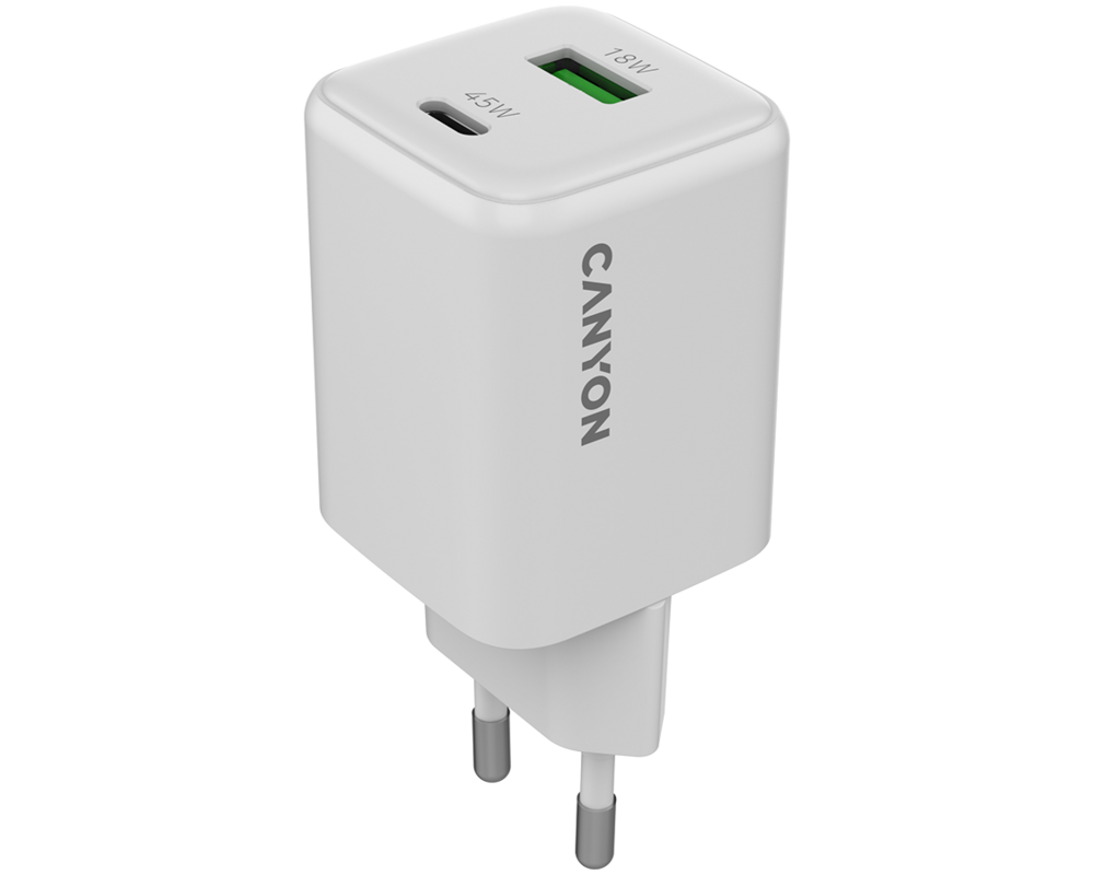 Зарядно CANYON CU45AC GaN 45W 1xPD 1xQC EU White CNS-CUW45AC