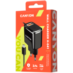 Зарядно CANYON H-041 2.1A/USB-A built-in MicroUS... CNE-CHA041BS