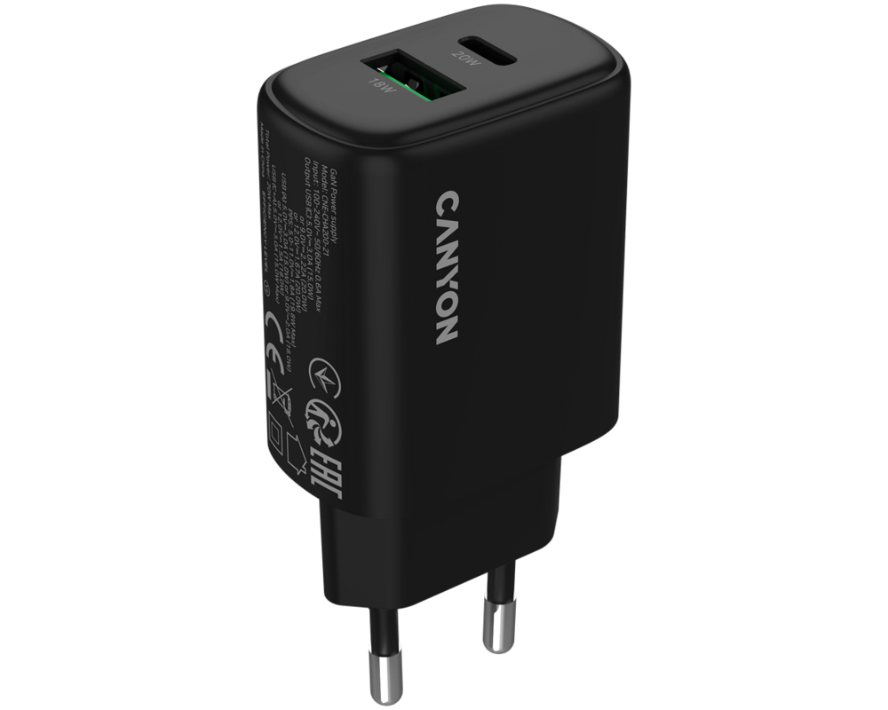 Зарядно CANYON OnCharge 200 20W 1xPD 1xQC EU Bla... CNE-CHA200-31