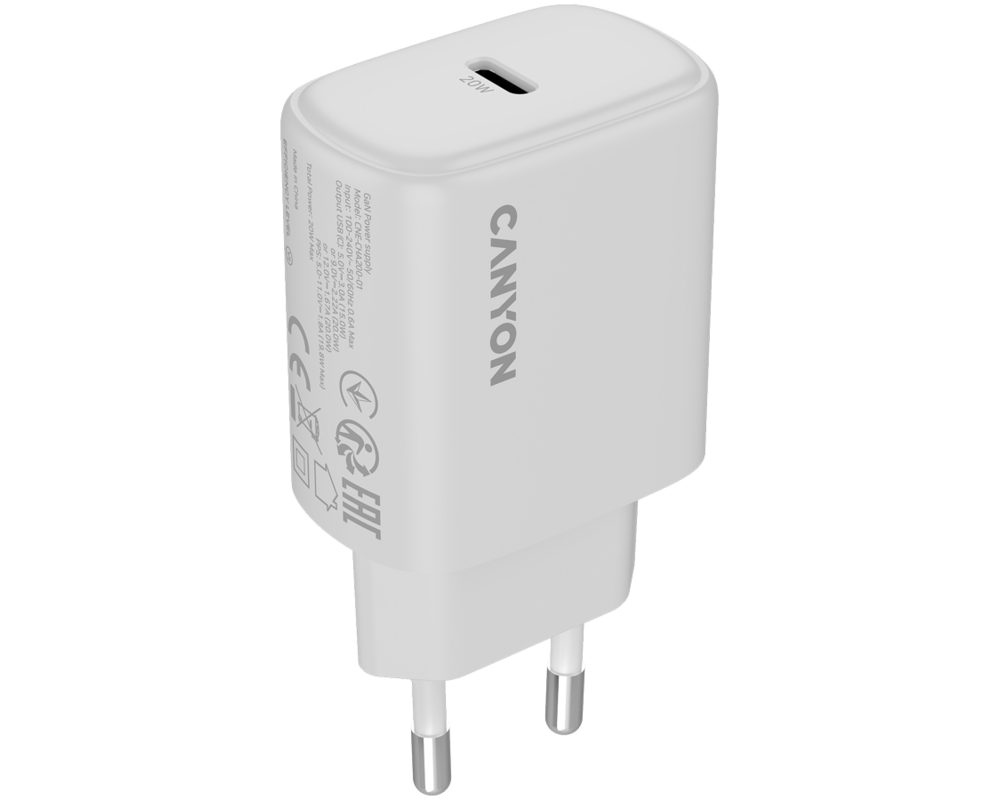 Зарядно CANYON OnCharge 200 20W 1xPD EU White CNE-CHA200-01