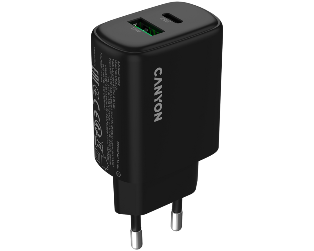 Зарядно CANYON OnCharge 250 25W 1xPD 1xQC EU Bla... CNE-CHA250-31