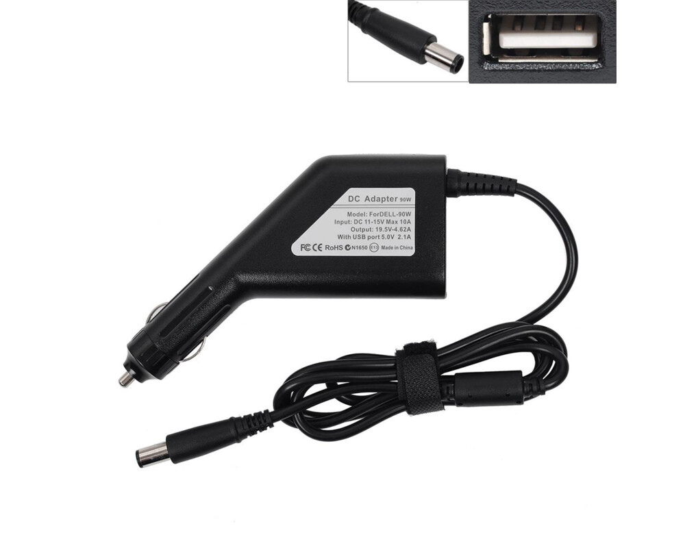 - DC Car Adapter / Зарядно за кола (автомобил) Dell 19.5V 90W 4.62A (7.5x5.0) + USB Charger (ID: 826485)