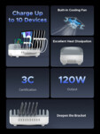 | Други характеристики | Total Output 5 V2.4 A*10 120 W; Single Port Smart Detection 5 V 2.4 A (Max); Charging Voltage : Smart Detect+Synchronous Rectification+Current Limit+Wide; Features : 10 Stands for Phones/Tablets |