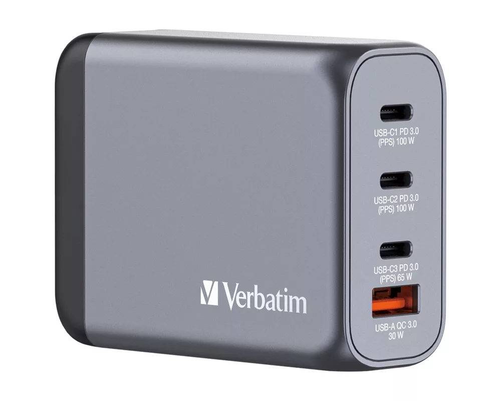 - Verbatim GNC-100 GaN Charger 4 Port 100W USB A/C (EU/UK/US) (ID: 692893)